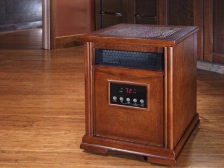 Another LIFESMART product that is Smart for You and Smart for the Planet. The LIFESMART Deluxe 6 Element infrared is the most powerful in our series of high heat output Infrared heaters that are revolutionary in design to offer you safe, healthy and therapeutic heat that saves you money and energy. LIFESMART offers ultra-efficient, safe and evenly distributed heat at less cost than other heating systems. The air quality emitted and its ultimate heating performance is due to an efficient and innovative design that incorporates the absorption of infrared energy. The LIFESMART Deluxe 6 Element features 6 of our patented quartz infrared elements that are actually wrapped in a metal heat exchanger coil for greater heat production. No other unit on the market has this exclusive & innovative technology. The result is more heat.We back this heater with an exclusive industry leading 3 year warranty. There is also a Lifetime Air Filter. This allows production and circulation of purified heated air back into your desired space. In house testing has shown our heaters are 38% more efficient then forced air electric, 66% more efficient then propane and 45% more efficient then electric baseboard yet the LIFESMART Deluxe 6 Element Infrared Heater only uses up to 1500 watts which is no more than a common hair dryer! The results are an even distribution of heat without the heat loss that normally occurs at windows, ceilings and walls. This saves energy, heat and money. There are 3 power settings to allow heating a smaller room using less energy and a quiet single speed blower system to circulate the heat. There is also a 12 hour count up and count down timer.The heater is surrounded by our all wood Quakerstown Dark Oak Cabinet Our Cabinets are made only of FSC certified wood protecting the environment and are a furniture grade 14 piece construction. E Z Glide casters will easily move from room to room and a remote control to operate the Digital Thermostat and Timer settings