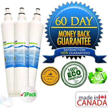 - Specifically Made to fit your Fridge - Made in North America. Help save the environment with this eco-friendly "green" filter. Compared to conventional carbon-based filters, Green filters are environmentally friendly. Conventional carbon filters are produced by a burning process called open pit charring which release pollution and greenhouse emissions into the air. Green filter components are produced with a new technology that carbonizes dried coconut shells in an enclosed self-sustaining system while capturing and converting the emissions into useful thermal energy. The filters are tested and certified to NSF and ANSI Standards 42 for the aesthetic reduction of chlorine taste and odor. As well as nominal particulate Class I and Standard 53 for the reduction of Atrazine, Lindane, Lead, Turbidity, and Cysts. This filter keeps a healthy level of fluoride, a water additive that promotes strong teeth. Swift Green filters provided complete filtration systems and equipment for residential and commercial uses. Whether you are looking for a system to filter your a single kitchen, the whole house, or your business, Swift Green filters have a solution to fit your needs and budget. It is recommended that you replace your water filters every 6 to 8 months.