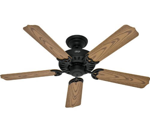 Special Price! for Hunter 28473 Bridgeport ETL Damp Listed 52-Inch 5-Blade Ceiling Fan, Textured Black with Plastic Oak Blades With Special Pomotions Fast Shipping